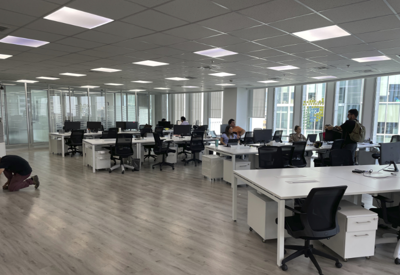 Habilitación en la comuna de Vitacura. Completa habilitación de oficinas en oficinas privadas, cubículos y tabiques vidriados con 400 metros en planta libre.